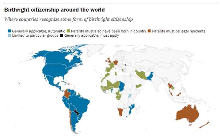 "Which countries, other than the US, offer birthright citizenship?", Al-Jazeera, Feb 2025, https://www.aljazeera.com/news/2025/2/6/which-countries-other-than-the-us-offer-birthright-citizenship