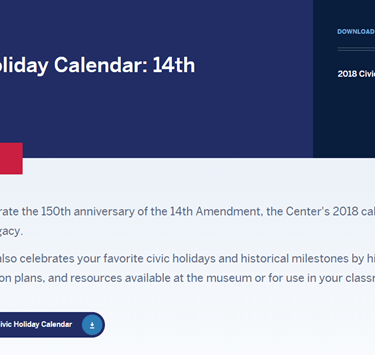 "2018 Civic Holiday Calendar: 14th Amendment" (resources/lesson plan), National Constitution Center, 2018, https://constitutioncenter.org/education/classroom-resource-library/classroom/2018-civic-holiday-calendar-14th-amendment