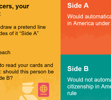 Let's start with a solid introduction to the main legal precedent for birthright citizenship, with resources focused on an elementary audience (but a secondary version with more primary sources is also available and listed below). The elementary lesson incorporates a children's book, video clips, and a single primary source activity. Good connections to Asian-Americans and late 19th century for older audiences (like the Chinese Exclusion Act).