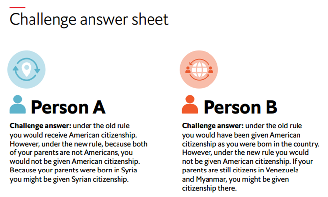 Since part of what I brought up (in both Part I and Part II) is how most of the world handles citizenship differently than the United States and other countries in the Western Hemisphere, thought it would be interesting to look at a European "take" on the debate going on in the U.S. This is from the educational foundation of The Economist magazine (based in Europe, but covering economic and political issues all over the world) looking more generally at the issues around citizenship (though most of their examples are framed around U.S. situations). I have given you a few screenshots as a sampling of the material, but there are pages of resources in the lesson (as well as Power Point slides).
