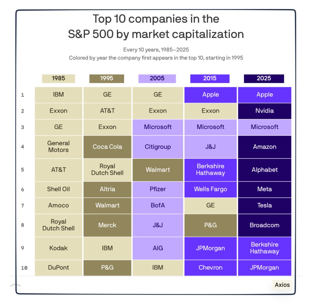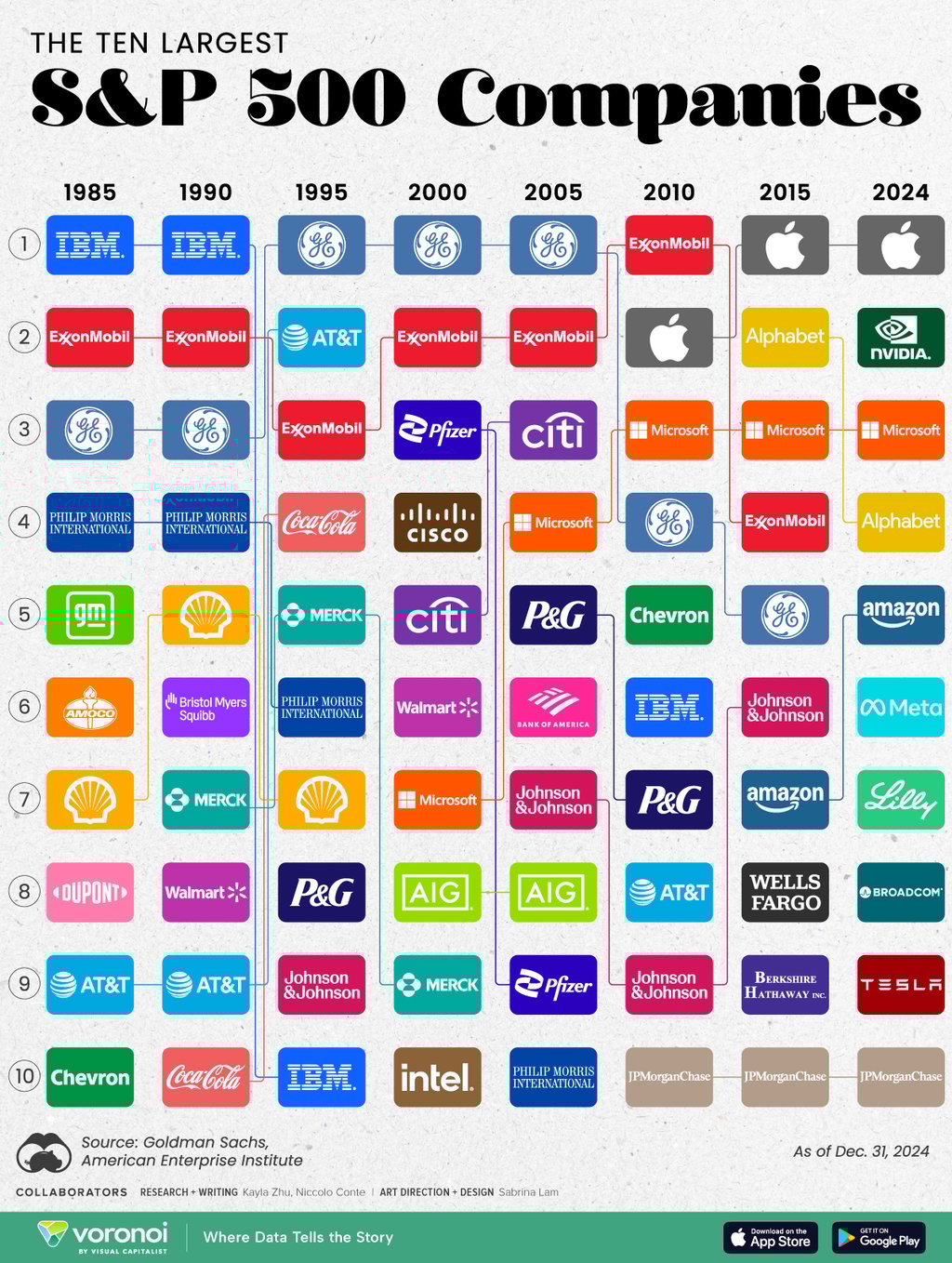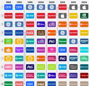 "Ranked: The Largest S&P 500 Companies Over Time (1985-2024)", Visual Capitalist, Apr 2025, https://www.visualcapitalist.com/ranked-the-largest-sp-500-companies-over-time-1985-2024/