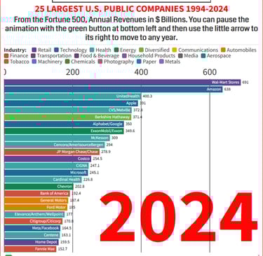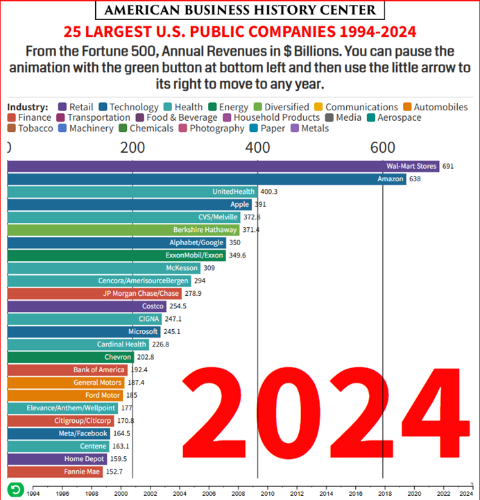 "Largest American Companies 1994 2024 Top 25" (video animation), American Business History Center, Jul 2025, https://www.youtube.com/watch?v=PTkPWeTN0aw
