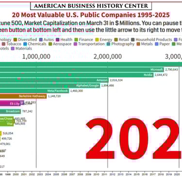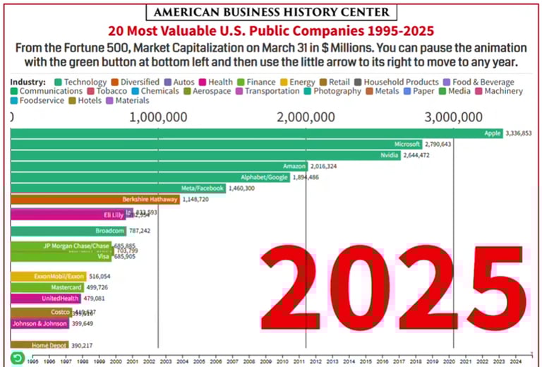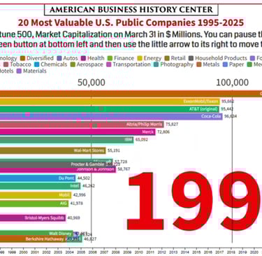 "Most Valuable American Companies 1995 through 2025" (video animation), American Business History Center, Jul 2025, https://www.youtube.com/watch?v=pjgS2LEEyqc