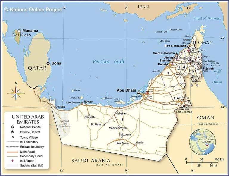“United Arab Emirates", One World Nations Online, Jan 2025, https://www.nationsonline.org/oneworld/arab_emirates.htm