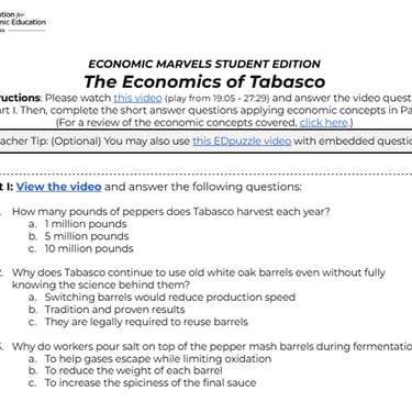 FEE's new Economic Marvels lesson plan - "The Economics of Tabasco"