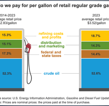 Now you could, of course, assume that this is another one of those "red state/blue state" things . . . and some of that does have a correlation (like local tax rates or surcharges for global warming efforts). But this next graphic gives you a more specific look at what elements make up the per gallon price . . .