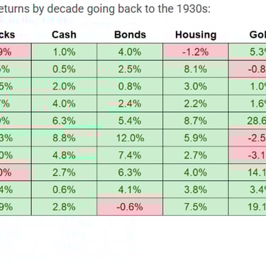 Cash is the only asset class not to have a losing decade . . . but 5 of the 10 decades the return rate was lower than the rate of inflation (which means your money is losing its value)