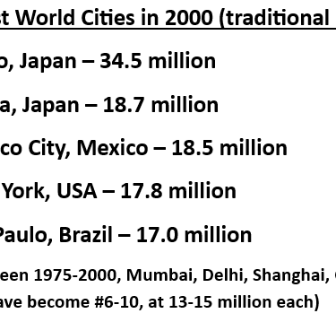 Second Point of Emphasis - Implications for this level of urbanization worldwide: