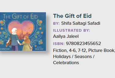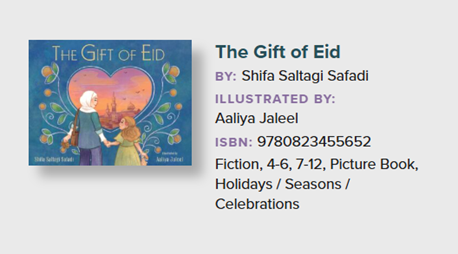 Shifa Saltagi Safadi's author page - https://shifasafadi.com/ , specific book page - https://shifasafadi.com/the-gift-of-eid/ and educator resource guide - https://shifasafadi.com/wp-content/uploads/2025/01/giftofeideducator.pdf