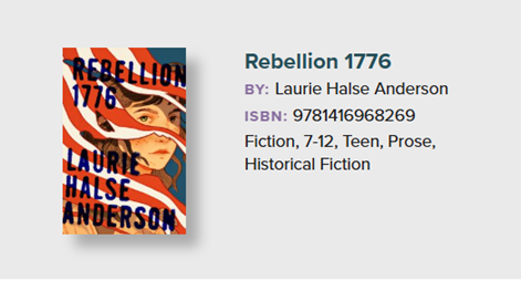 Laurie Halse Anderson's author page - https://madwomanintheforest.com/ and specific book page - https://madwomanintheforest.com/book/rebellion-1776/