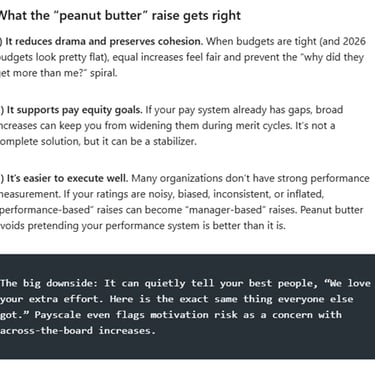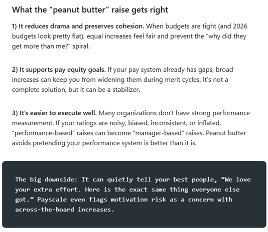 "Peanut Butter Raises: When Fairness Undermines Motivation", Curt Archambault at LinkedIn, Feb 2026, https://www.linkedin.com/pulse/peanut-butter-raises-when-fairness-undermines-curt-archambault-uopwc/