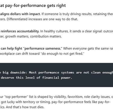 Now you can probably figure out pretty quickly that this is nothing new - just a new name for an old issue (whether it is called "cost-of-living raises" or simply "equity"). I'm going to borrow from a LinkedIn post by Curt Archambault (which I will link below so you can go and read the whole thing) - he does a great job of spelling out the positives and negatives of this approach:
