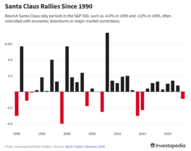 "Santa Claus Rally: What It Is and Means for Investors", Investopedia, Dec 2024, https://www.investopedia.com/terms/s/santaclauseffect.asp